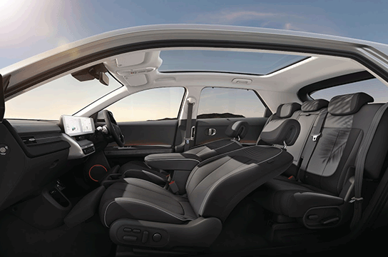 Fitur V2L memungkinkan IONIQ 5 menjadi sumber daya listrik sebesar 3,6 kW untuk penggunaan perangkat elektronik, menambah kemudahan dan kenyamanan Anda saat dalam perjalanan.